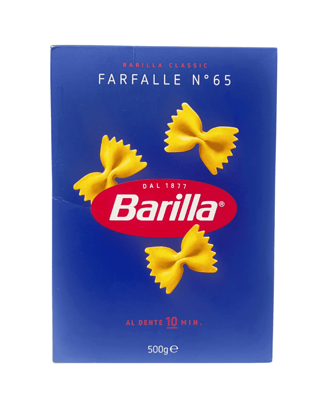 Experience the true taste of Italy with Barilla Farfalle No. 65, also known as “bow-tie pasta.” Crafted from 100% premium durum wheat semolina, this pasta delivers the perfect al dente texture and holds sauces beautifully — making it ideal for creamy, tomato-based, or vegetable dishes.