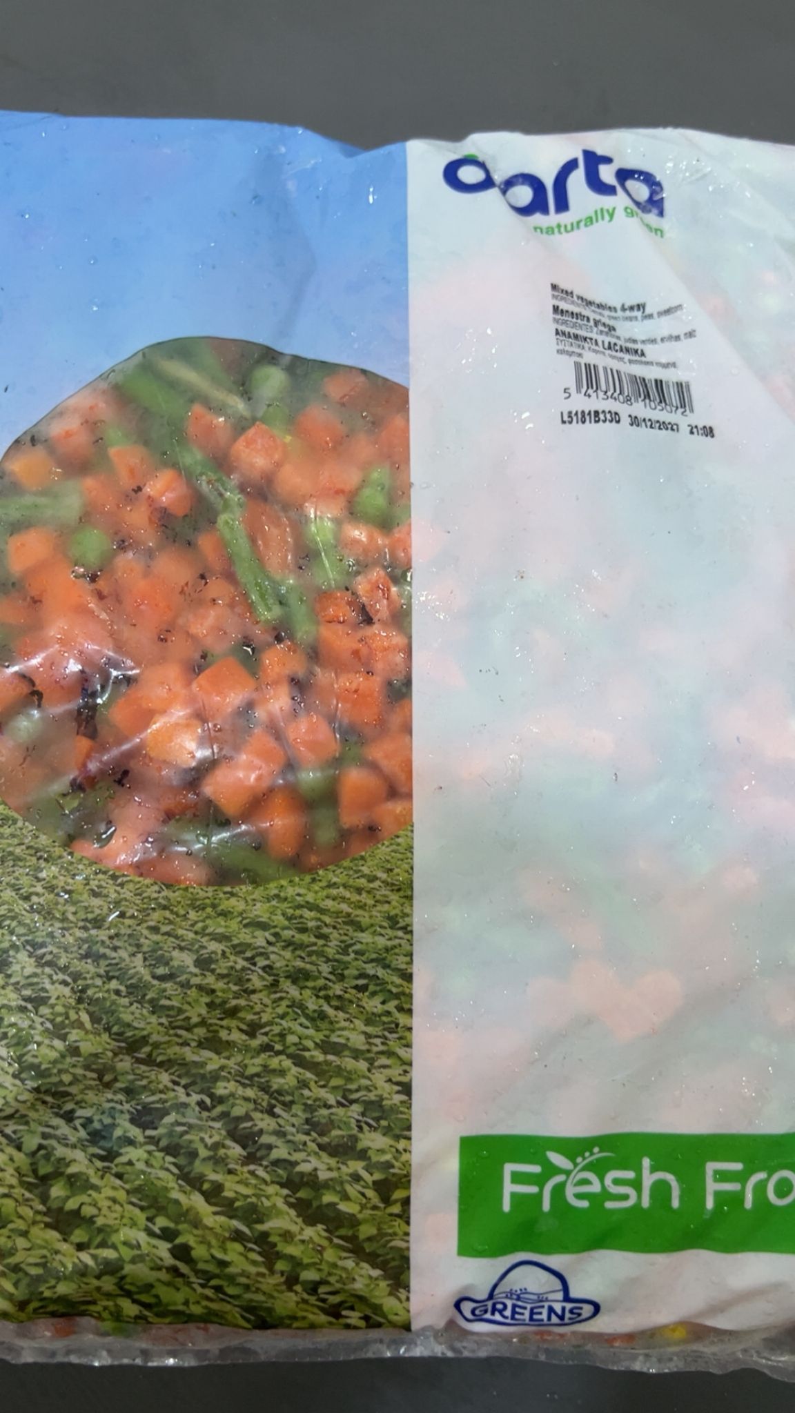 A perfect mix of carrots, green peas, sweet corn, and green beans